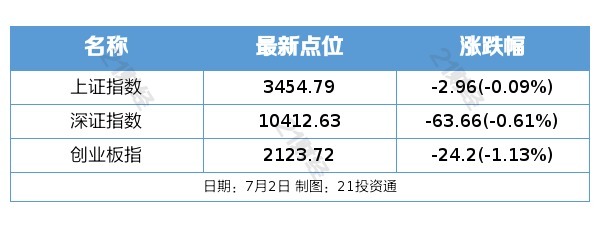 7月2日,A股三大指数集体下跌,截至收盘,沪指跌0.09%,深成指跌0.61%,创业板指跌1.13%,北证50指数跌1.23%。全市场成交额14051亿元,较上日缩量914亿元。全市场超3200只个股下跌。板块题材上,光伏、钢铁、养殖、代糖、煤炭、海工装备板块涨幅居前;算力硬件、半导体、脑机接口、数字货币、多元金融板块跌幅居前。
