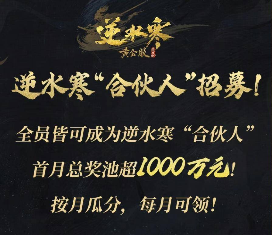 所谓的合伙人招募,就是面向游戏全体玩家。只要玩家玩游戏玩的足够认真,各种玩法模式的参与度够高,就能积累足够的“月奖积分”。当积分达到标准的时候,玩家们就能自动解锁“逆水寒共创合伙人”的身份,每个月领取月奖奖金。
